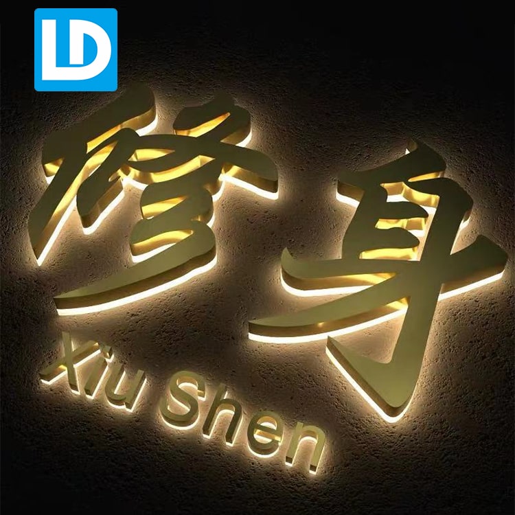 Gold Metal Signage Custom LED Backlit Channel Letters
