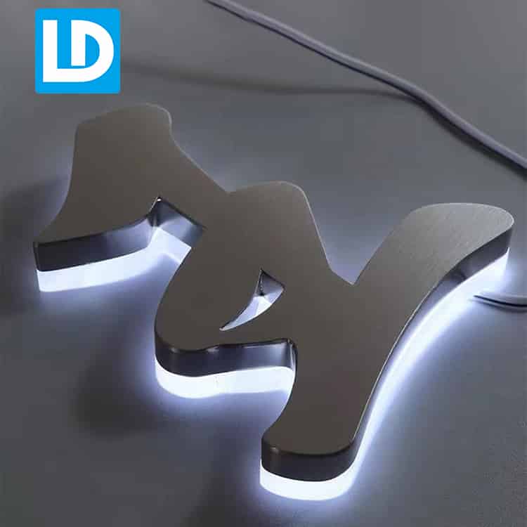 LINDO SIGN supply high quality metal sign and backlit letter: 3D metal signs, non-illumianed dimensioanel lettering for office; Metal backlit letter, stainless steel and acrylic backlighting signage for outdoor advertising; Backlit logo, custom make illumianetd logo reverse lit; Backlit business sign, install outdoor and indoor to explore your brand; Gold metal signage, electroplate gold color, custom make front lit or halo lit signs for company.