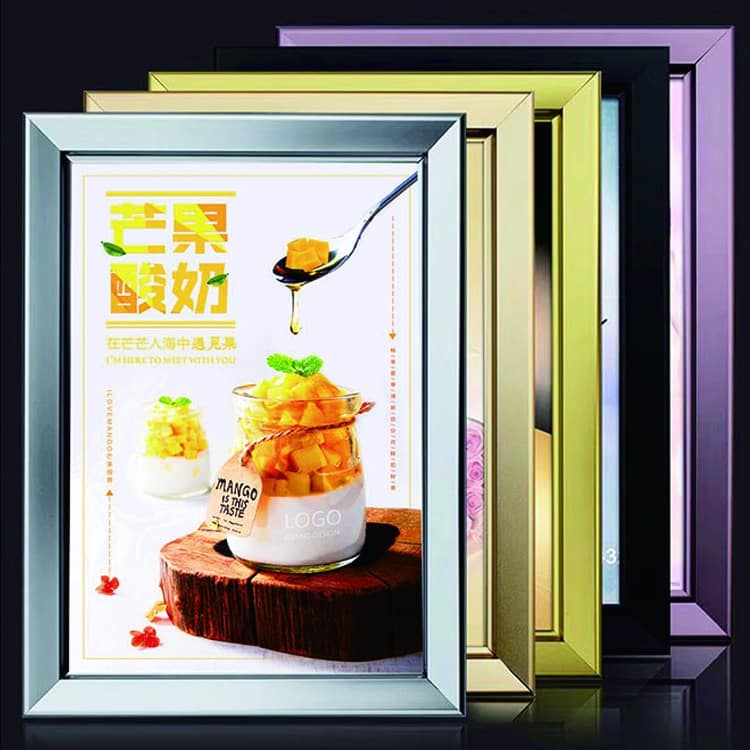 LED snap frame is designed to illuminate double-sided posters just like at the theaters. The poster is held securely using the aluminium snap mechanism and protected by a clear PVC cover sheet. The frame can be hang using 2 metal hooks at the back. You can power the LED using the provided 12V transformer driver. Simply plug in and switch it on.