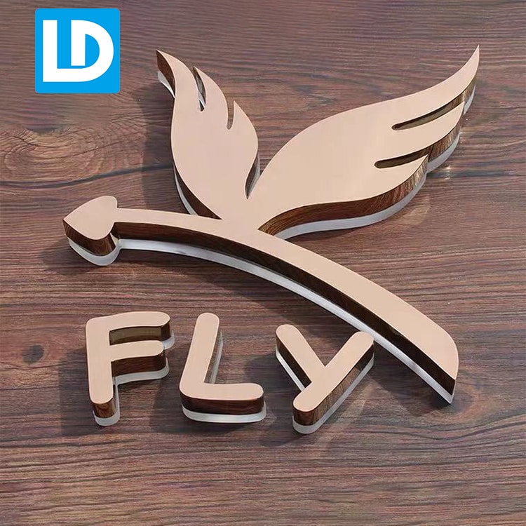 We make high quality SS backlit letter, laser cut 1.5mm stainless steel meta;, electroplate gold colors, welding and polish frame. Backside use 20mm clear acrylic to light up the letter sign.