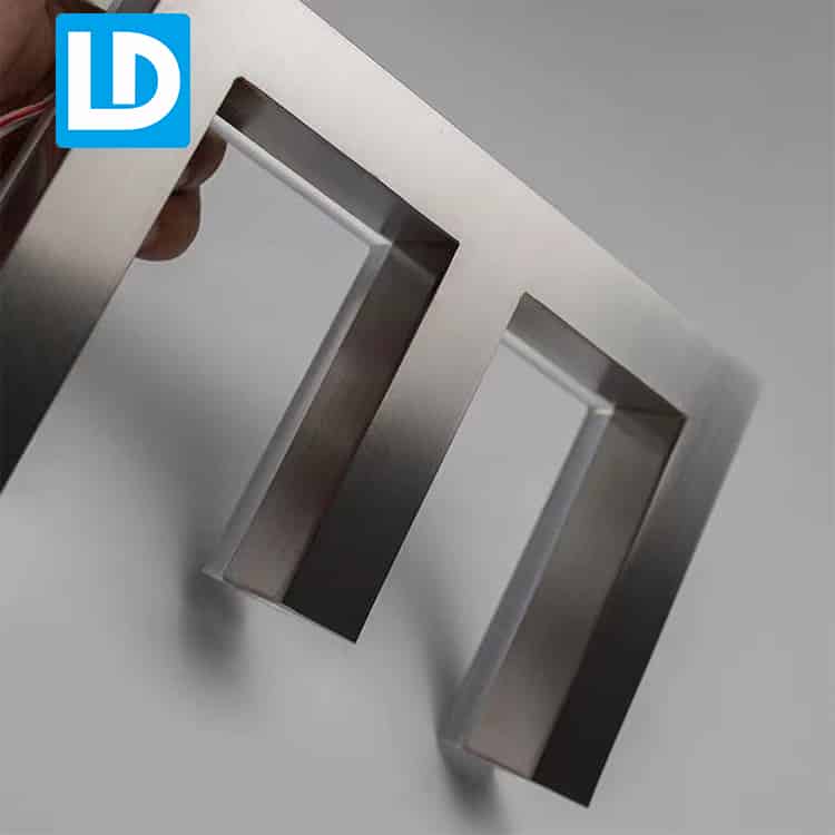 LINDO SIGN Supply led letter and signage: Light up letter, custom stainless steel marquee letters; Channel letter sign, 3d dimensional waterproof illuminated letter for sign; Mini led letter, small acrylic double sided channel letters for outdoor; Custom led letters, mounted on raceway store front signage; Custom led metal sign, electroplate SS gold backlit channel letter signage; Exterior backlit sign, indoor and outdoor led metal backlit signage.