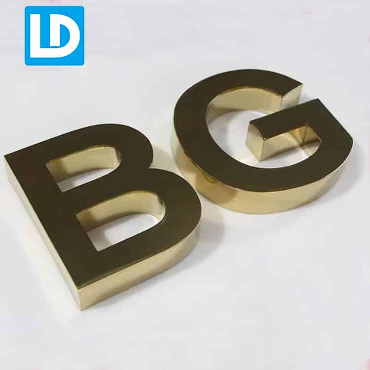We custom amke stainless steel signs, steel metal have different surface treamnet: Electroplate gold, rose gold, tinianum and else colors; backing Panton color value. It can install at outdoor company logo, store name.